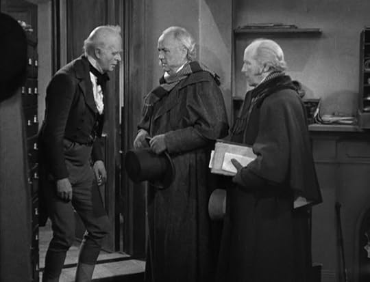1951's Scrooge is another adaptation that puts the visit by the charitable solicitors in front of Scrooge's nephew. I speculated why that was last year and I'm happy to see that my previous thoughts match the theory I came up with this year, which is that putting the solicitors first is a way of presenting Scrooge's general worldview before honing in on his personal issues with Christmas and his nephew.