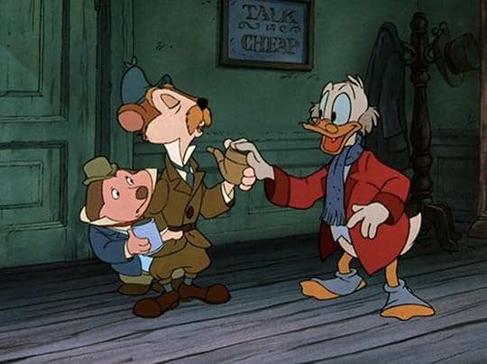 Possibly because Mickey's Christmas Carol puts as much value on humor as on faithfulness to Dickens, its Scrooge is arguably the most relatable version ever. As I've mentioned before, Disney's Scrooge isn't a miserable miser; he's a merry one. Unlike most other Scrooges, he gets joy out of his wealth and has a robust sense of humor. That's never more evident than in his encounter with the charitable solicitors, played in this version by Rat and Mole from The Wind in the Willows. (I used to get Rat confused with Basil from The Great Mouse Detective, because of his pipe and hat, but that character looks completely different.)