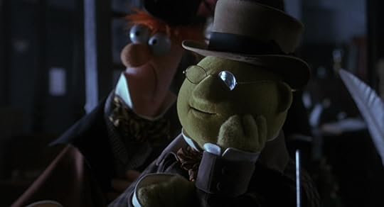 I mentioned this last year, but The Muppet Christmas Carol is unique in that it has the charitable solicitors' visit overlap Fred's by a considerable margin. Other adaptations may have the two men come in as Fred's leaving, but here they get to interact quite a bit. As Fred's just finishing up his speech about how wonderful Christmas is, Gonzo cuts in to introduce the audience to the "well-meaning gentlemen (who) call upon businesses collecting for the poor and homeless." Cue Professor Honeydew and Beaker.