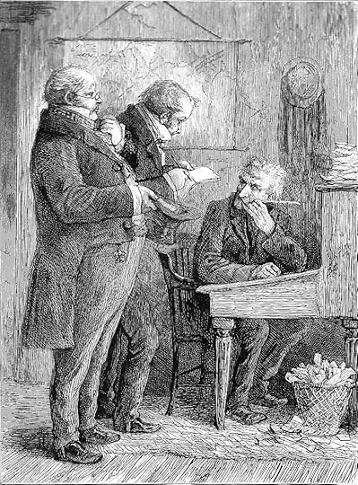 I never know what to feel about the solicitor's persistence. Is he stubbornly hoping to wear Scrooge down? Or is he just that clueless about what Scrooge is clearly telling him? Dickens doesn't clarify, so it'll be interesting to see what facial expressions and body language the actors and artists use when delivering these lines.
