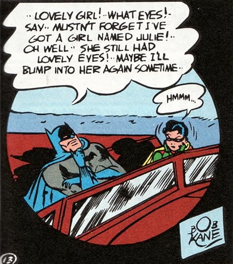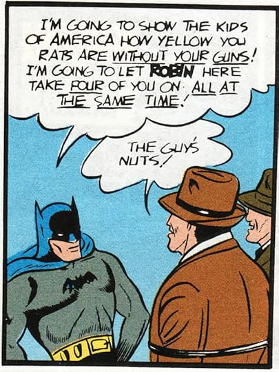 In addition to Batman's letting the Cat go in the third story in Batman #1, something else weird happened. While fighting a second gang of jewel thieves, Batman pauses to make the strange statement above. It's odd because he's alone on a boat with just the crooks and Robin.