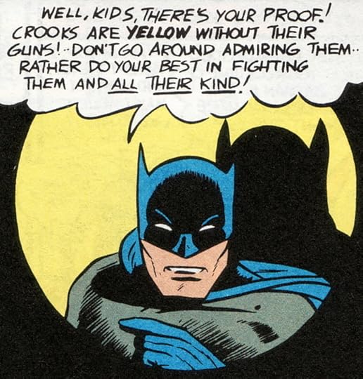 That's not nearly as much fun to think about as possible in-story explanations, but when Batman's directly addressing the children in the audience, it's not possible to ignore.