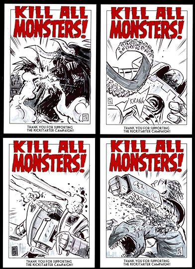 Finally, Jeff Bouchard from Comic Spectrum wrote a very nice review of Kill All Monsters, Volume 1, giving it 4 out of 5 stars, saying that he got a Kamandi feel from it (very cool), and writing that it "provides a visceral experience from the over-the-top battles between monster and mech at the same time weaving deeper plot points that leave you thinking and wondering where the story will go." Thanks, Jeff!