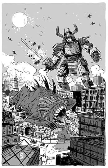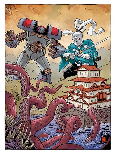 That's a piece that Jason drew for the Monstrosity anthology and it's not the only giant robot pinup he's done lately. He also did this one for this year's Baltimore Comic-Con yearbook, which has a Usagi Yojimbo theme. Mike Spicer did the colors. Really wish I was going to Baltimore this year.