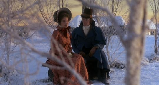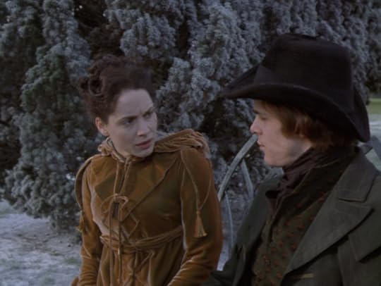 We cut to Young Scrooge and Belle who are already mid-conversation. She's not wearing mourning clothes, so the conversation hasn't started because of a change in her fortunes. Scrooge is making his "There's nothing the world is so hard on as poverty" speech and Belle tells him that he fears the world too much. We don't know what any of this is in reference to, but I can imagine that it's just a philosophical disagreement so far. She may not have accused him of anything yet.