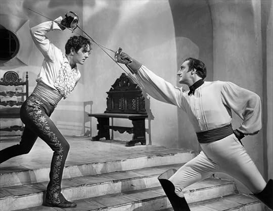 There are some nods to Douglas Fairbanks' version that are worth pointing out. Fairbanks' handkerchief tricks are replaced by Power's having a general love for magic and sleight-of-hand, but he actually says, "Have you seen this one?" at least once. And Power's Diego also has Fairbanks' tendency to embed his sword in the ceiling until circumstances demand that he need it again.