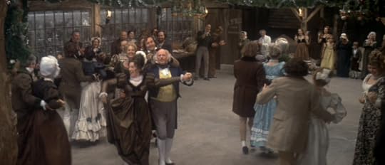 Young Scrooge comes up behind her and asks her to dance. He's not especially animated, but he's not awkward like the Young Scrooge in the Albert Finney version. He's much more comfortable and confident around Belle. This is a Scrooge who has settled in and made a place for himself.