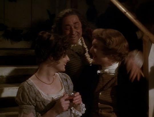 "I shall take heed of your advice, ma'am, and go through life with a grin on my face." But he's not quite grinning. He doesn't seem to think that he can actually do it. We've seen him capable of enjoying himself at this very party, and that's all due to Belle's presence. She has that effect on him. But to fundamentally change his personality and worldview? That's a tall order.