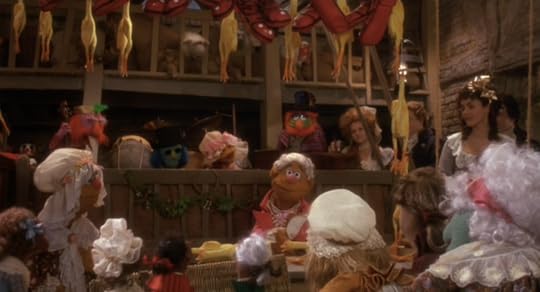 Speaking of simplistic, there's also not much detail about Fozziwig's character in this version. We meet his Mom, but he doesn't appear to be married or have any children. The guests are a hodgepodge - we get to see Rowlf and the Swedish Chef - but puppets causing chaos is a Muppets staple and it doesn't seem like Fozziwig has any special, particular compassion for social outsiders as a group. He's weird, so his friends are all weird, too.