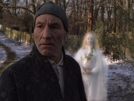 Last year, we noted that the Spirit of Christmas Past resembles someone specific from Scrooge's past, but we didn't have enough information to know who that was yet. Likely guesses were either Fan or the woman whom Scrooge was once engaged to.