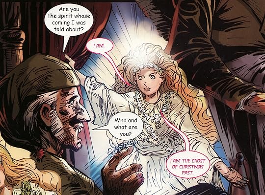 Scott McCullar and Naresh Kumar skip the build-up to the Spirit's appearance and just have Scrooge wake up at the stroke of one. Frankly, that's fine with me. I don't think that the weird passage of time adds to the story and I prefer versions where everything is happening in one night anyway.