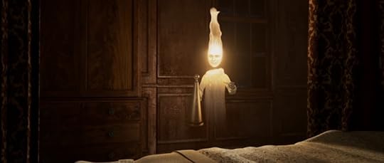 The Spirit itself is super accurate. It's got the long, white hair and the youngish, gender-neutral face. It carries the holly and the cap and there's a bright flame coming from its head. It even flickers in the way Dickens described, with extra limbs and even heads coming into and fading out of view. (One cool result of this is that the Spirit can hold onto its holly and cap, but still have hands to interact with Scrooge.)