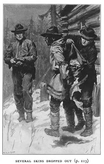 "The Case of Miss Virginia Plank" has November and Quaritch looking for a murdered girl. November's careful tracking proves the girl is not dead, but kidnapped. Later, after meeting the kidnappers (a big man who talked and a small one who didn't), November is onto the truth. The tracks of the small man reveal his moccasins are too large. November knows that Virginia Plank was the small man and the kidnapping is a set-up. With a knowledge of civilized girls and a little poking around, he identifies the girl's accomplice, Hank Harper, and finds her at his cabin. Virginia explains why she pulled the stunt, and like in "The Crime at Big Tree Portage," November's sense of justice outweighs his sense of law.