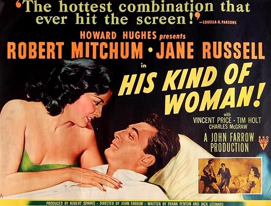 What It's About: Gambler Dan Milner (Mitchum) is coerced by gangsters to stay at a Mexican resort for mysterious reasons. It sounds like an easy job, but it gets complicated quickly by the resort's other inhabitants, which include thugs and government agents, but especially a singer (Russell) and the famous, married actor (Price) she's dating.