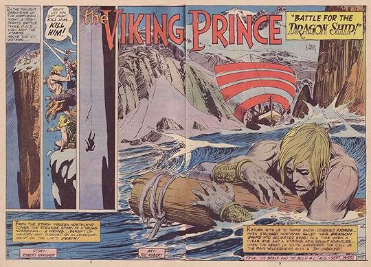 “Valley of the Giants” was written by Jack Oleck with art by Jess Jodloman for Secrets of the Haunted House #6 (June-July 1977). Jodloman drew King Kull for Marvel’s Kull and the Barbarians (1973) and this experience serves him well in this tale of Vikings. Oleck has a ruthless band of Vikings - lead by Rurik - raid the English coast where an old witch prophesies that Rurik and his men would die by giants. A storm drives them to the African coast. There they attack and capture an Arab ship. One of the Arabs tell them of a fabulous treasure in a valley of giants. The Vikings kill all the Arabs to protect their ship and then press on into the jungle. Pygmies attack them with poisoned arrows. Rurik and his men die fighting the pygmies, but before they die Rurik laughs, knowing the giants of the prophecy are not their opponents but themselves.