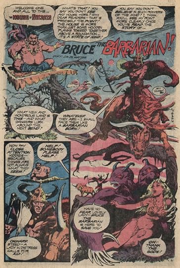 “Valley of the Giants” was written by Jack Oleck with art by Jess Jodloman for Secrets of the Haunted House #6 (June-July 1977). Jodloman drew King Kull for Marvel’s Kull and the Barbarians (1973) and this experience serves him well in this tale of Vikings. Oleck has a ruthless band of Vikings - lead by Rurik - raid the English coast where an old witch prophesies that Rurik and his men would die by giants. A storm drives them to the African coast. There they attack and capture an Arab ship. One of the Arabs tell them of a fabulous treasure in a valley of giants. The Vikings kill all the Arabs to protect their ship and then press on into the jungle. Pygmies attack them with poisoned arrows. Rurik and his men die fighting the pygmies, but before they die Rurik laughs, knowing the giants of the prophecy are not their opponents but themselves.“Bruce the Barbarian” in Unexpected #205 (December 1980) was written by JM Dematteis with art by Vic Catan. Bruce E Platt is an unpopular disc jockey who uses the occult to create a fantasy world in which he is a heroic barbarian. This alternate reality becomes so real that when his former girlfriend, Cornelia, comes to his apartment, he kills her by accident. When the cops come to arrest him, they find Bruce being tormented for eternity in a very real hell. This type of story, the fantasy fan as escapist-loser is one of my least favorite tropes, being the shallow reaction of non-fantasy fans: whether it is Harlan Ellison’s “Delusion For a Dragonslayer” (1966) or the anti-LARPing film, Mazes and Monsters starring a young Tom Hanks (1982). Dematteis would pen the final issues of Marvel’s Conan the Barbarian, so I suspect he’s not an anti-fantasy fan.