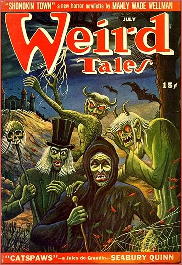 Lovecraft's circle shared mention of their separate creations in the pages of Weird Tales, name-dropping here and there a friend's character or some other reference. This was the beginning of the Cthulhu Mythos. Not everyone at Weird Tales was included; just the closest correspondents of Lovecraft’s. Later, August Derleth would take what was largely a game for HPL and tie it into a commercial package that featured monsters, weird books, and a shared world of dreams and terror. I suspect Manly Wade Wellman tried a little of this magic too.