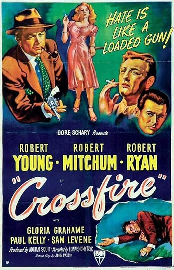 Another early Robert Mitchum movie. I liked this one better though. It's a psychological thriller disguised as a murder mystery. From the start, there are really only a couple of options for who the killer might be, so the real mystery is about the potential motives of the primary suspects. Both are recently discharged soldiers, but one's a hateful bigot and the other is a sweet, but stressed out kid who may not be responsible for all of his actions. Robert Young is the main cop on the case, with Mitchum playing an officer who knows both suspects and wants to prove the kid's innocence.