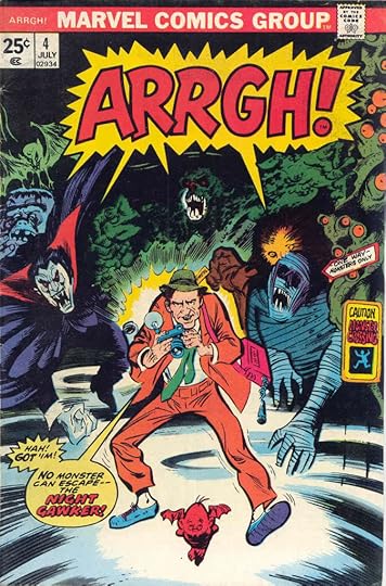 Marvel experimented with monster spoof comics with a title called Arrgh!. It ran five issues from December 1974 to September 1975. The series was edited by Roy Thomas. The majority of the strips used were based on the classic Universal monsters. In the fourth issue a parody of The Night Stalker TV show lead off with a 10-pager written by Jack Younger (aka Russ Jones). The artwork was penciled by Gerry Grandenetti (better known in the Warren magazines and undergrounds) and inked by Marvel staffer Frank Springer.