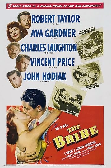 Taylor is never a compelling lead. He even makes Ivanhoe boring, for goodness sake. I don't know that I've ever seen Ava Gardner in anything else, so I don't want to judge her too harshly for The Bribe. She's dull too, but that might be Taylor's rubbing off on her. Vincent Price is great, but he's barely in the thing, which leaves Laughton to do all the hard work. His character is purely there for exposition (and I guess a red herring, if you're super gullible), but he does fantastic things with it.