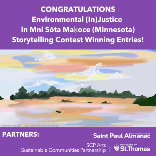 I am one of six winners of the Environmental (In)justice in Mni Sóta Maḳoce (Minnesota) Storytelling Contest presented by the University of St. Thomas Sustainable Communities Partnership and the Saint Paul Almanac. The contest sought submissions of poetry, nonfiction and fiction prose, visual art and/or video/audio work “that speak to the harsh realities of environmental injustice as well as ones that imagine an environmentally just future.”