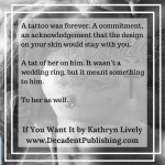 Francesca’s devotion has always been to her family, friends, and the job she is passionate about. Her life hasn’t been easy. She sacrifices a lot for the ones she loves and for her dream to visit Italy. Then Francesca finds herself in a desperate situation, and the tattooed beast who is serving his debt to society must save the headstrong woman from a secret that could destroy her. In turn, Francesca teaches Ryder, if you love something enough, it’s worth fighting for.