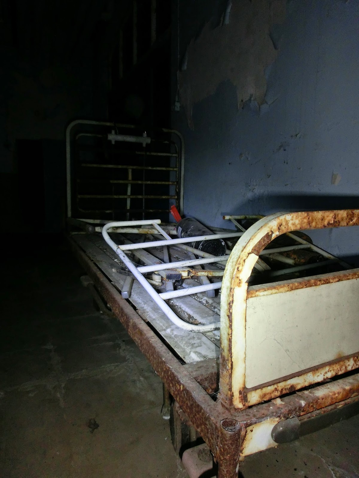 We went into a ward. It was a bit odd. Looked like it had been make shifted together. Old rubbish mattresses on steel beds. Not proper hospital beds. No real bedside furniture. A few of the cubicles had curtain dividers half pulled across. Wouldn't really want to wander around there on my own. At least, not at first.