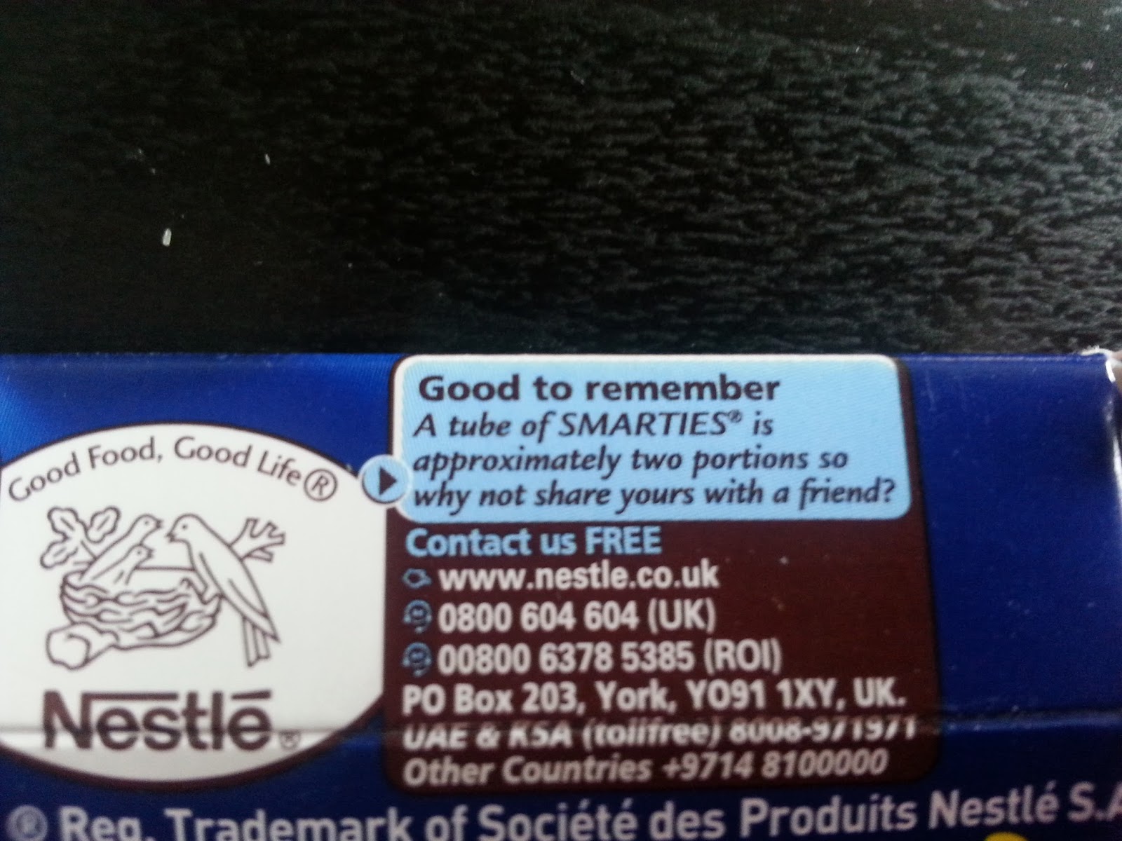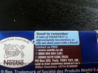 A tube of smarties is approximately two portions so why not share yours with a friend.