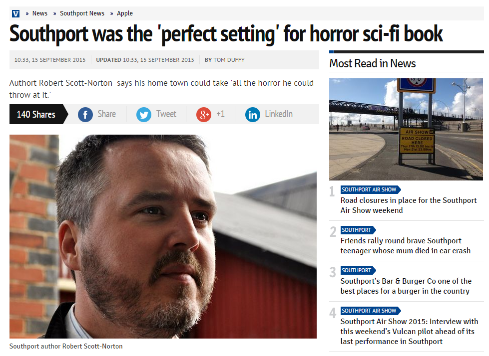 Opportunity 2 - Local paperA piece in the local paper. Not to be sniffed at, the Southport Visiter is the only paper worth reading in the area. The Face Stealer had a good angle in that it's set in the town so it became a local interest story.