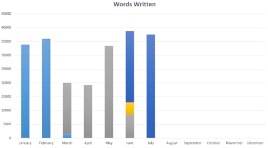 Graphs are what I need. More graphs. So, I found myself adding this little beauty. It shows the various projects and word counts on each over the year so far.