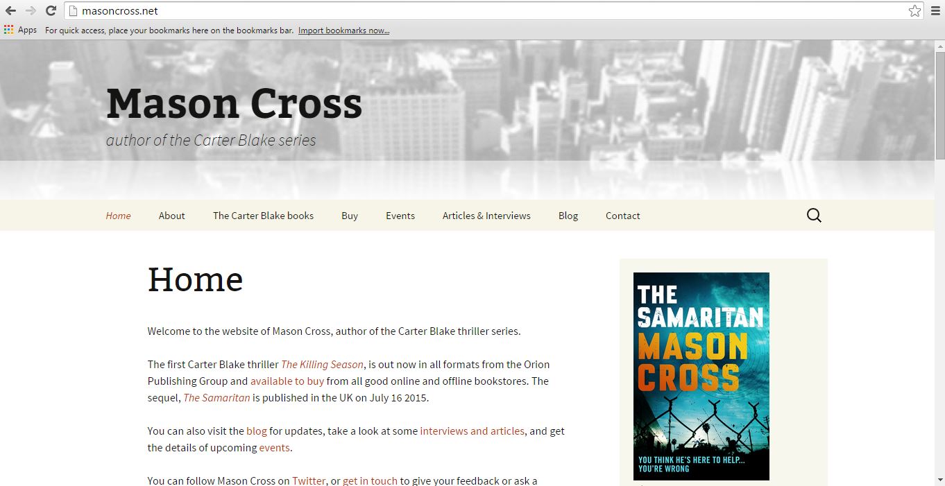 Go to www.masoncross.net to check it out - I've kept most of the original content, but updated some of the reviews and added covers from different territories. There's also a new mailing list, which means I can let you know when a new book's coming out.