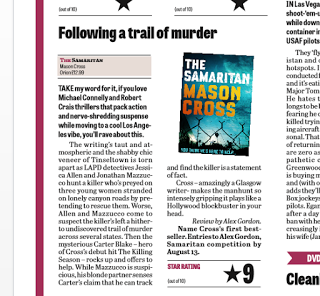 "If you love Michael Connelly and Robert Crais thrillers that pack action and nerve-shredding suspense while moving to a cool Los Angeles vibe, you'll rave about this ... Cross - amazingly a Glasgow writer - makes the manhunt so intensely gripping it plays like a Hollywood blockbuster in your head."