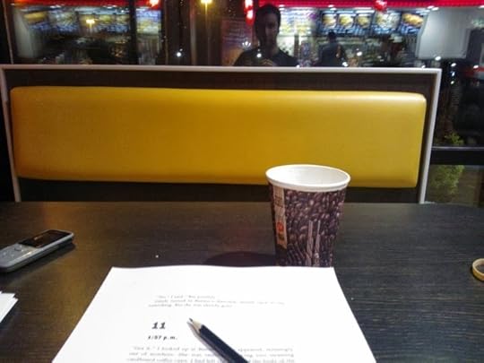 Luckily for me, I can write almost anywhere: in pubs, in cafés, in bed, on park benches, on the train, in hotel rooms... even occasionally at my desk at home.