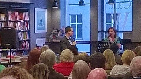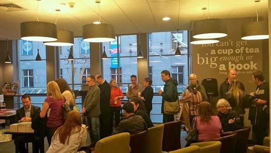 The 23rd and 24th April was a very cool couple of days, featuring a lot of firsts. If I wasn't a writer, and therefore theoretically supposed to be avoiding the most well-worn of clichés, I'd be forced to describe the day of the launch using the adjective 'whirlwind'. Let's all just agree that I thought up a more original and inspired metaphor than that and move on. I kicked off the day with my first-ever interview with the media, for a story in my local newspaper that would be repurposed for a lot of the local Glasgow newspapers. That was followed up with my first interview on live radio, on East Coast FM. I think I did okay on both, for a newbie, but I knew this was just the warmup. The 23rd was launch night, which meant I would have to do a Q&A in front of a live audience. It was a steep learning curve: from talking to someone on the phone, to talking to someone on the phone with his radio audience listening in, to talking to someone in person with a hundred people staring at me. My editor at Orion, Jemima Forrester, had travelled all the way up from London to Glasgow to be there for the launch event, and I was so pleased she was able to make it. Jemima has been one of the most important people in getting the book to this point, not just in the obvious way (signing me up for Orion), but in her dead-on suggestions and contributions to the book itself. My wife and I had a brief but very enjoyable dinner with Jemima before it was time to head down to Waterstones. Caron Macpherson, manager of Waterstones Argyle Street, was doubling as talk show host for the evening, and being the hyper-organised person that she is, naturally had everything well in-hand. A big part of my ability to conquer pre-game nerves was the knowledge that all I had to do was show up and attempt to talk in coherent sentences. I knew everything else would be taken care of, and so it was. We held off starting until a little after seven because people kept on arriving, until the point that there was standing room only. I never got around to doing a precise headcount, but I'm told there were over a hundred people, which was amazing. Just as amazing as the great turnout from family, friends and workmates was the fact that there were a few people there who didn't actually know me.