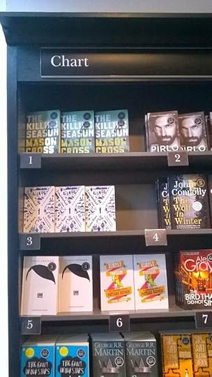 Sloans is one of Glasgow's oldest pubs, apparently established in 1797, and it's a cool place: spreading over several floors of a big old townhouse that adjoins the Argyle Arcade, Glasgow's jewellery hub. We had the first floor booked out, and it was set up more like a living room than a bar, with couches and candles. It was an evocative venue to get together with friends after the show, and it was great to relax with a few drinks and contemplate the next day: the day my first novel would be published. On Thursday 24th April, I woke up without too much of a hangover and contemplated existence in a world where The Killing Season was suddenly a real book you could walk into a shop and buy, rather than some scribbles on a page or a computer file. Just to check it wasn't a dream, I headed into Glasgow and checked the book was still there. It was. Caron asked me to sign some of the store copies and suggested I hit some of the other Waterstones branches to sign stock there too. I conducted a mini-tour of Waterstones branches in the West of Scotland over the next few days, notching up Glasgow Sauchiehall Street, Braehead, East Kilbride, Newton Mearns and Ayr. I even made a trip east to Scotland's runner-up city to sign stock in a couple of the Edinburgh branches. One final nice surprise when I dropped into Argyle Street the following week, and it's down to the fact that Waterstones branches compile their own local sales charts. Even though I know the results had been skewed somewhat by the number of copies I sold on my launch night, it was pretty cool to see The Killing Season on the shelves in this position, if only for one week: