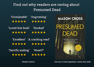 Presumed Dead is published this week in the USA, available in paperback, ebook and audio. A change of publisher means the ebook should be a little less expensive than previous ones, which I hope means more readers will pick it up!
