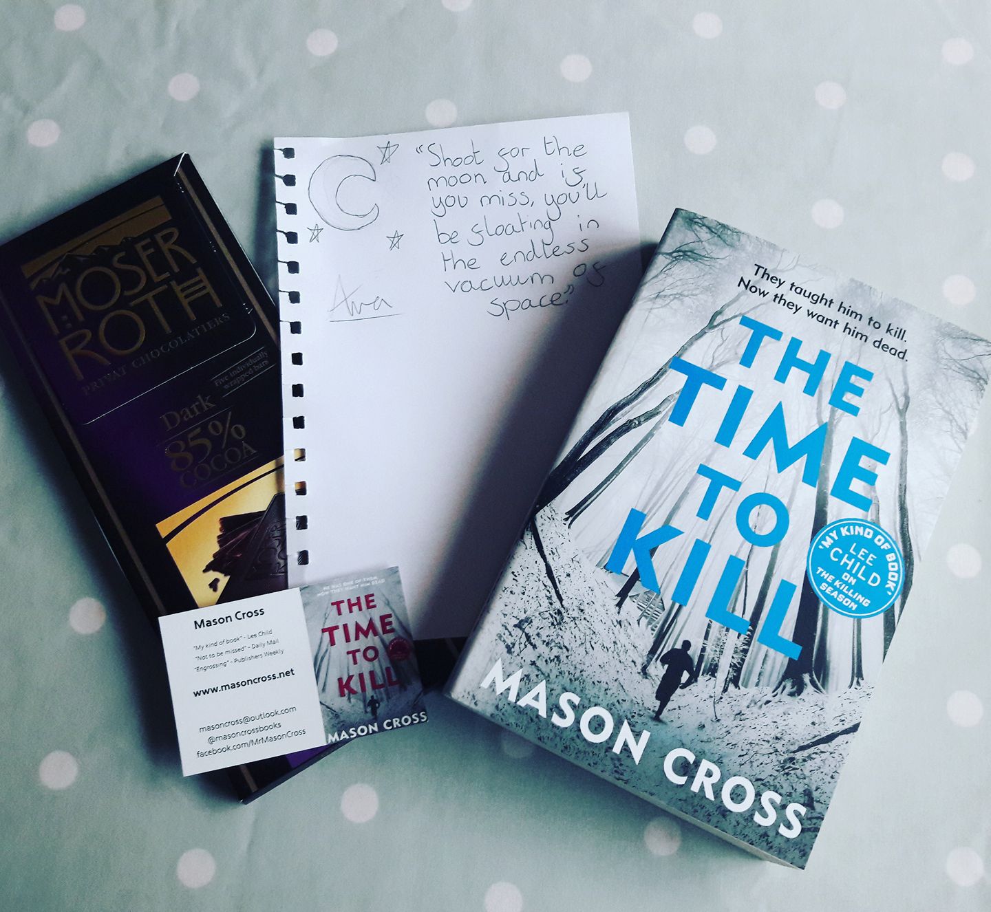 This time, you can be in with a chance of winning a signed copy of the third Carter Blake book The Time to Kill (aka Winterlong). You'll also get some nice chocolate and an inspirational doodle that my more-famous-than-I'll-ever-be daughter Ava has kindly contributed.