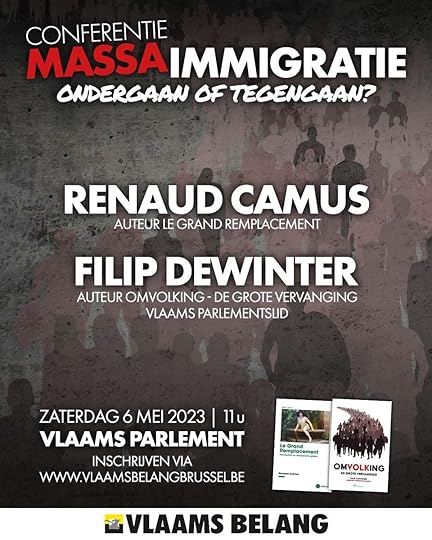 Op zaterdag 6 mei as spreekt de auteur van ‘Le Grand Remplacement’ #Omvolking #RenaudCamus voor het eerst in ons land. @RenaudCamus neemt deel aan de conferentie ‘Massa-#immigratie: ondergaan of tegengaan?’ in het Vlaams parlement. Inschrijven kan via facebook.com/events/53771078…