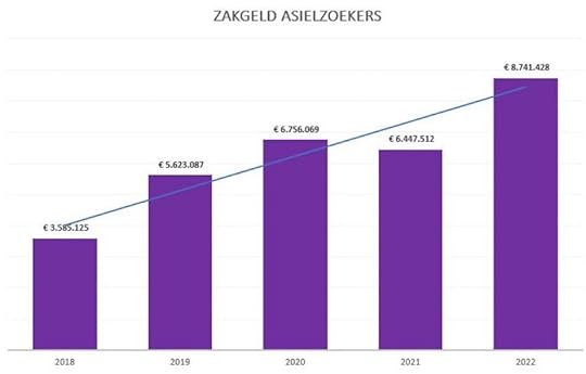 Het zakgeld dat uitgekeerd wordt aan asielzoekers bedroeg vorig jaar bijna 9 miljoen €. 3x meer dan 5 jaar geleden… In totaal kost de opvang van asielzoekers de belastingbetaler 861 miljoen € in 2022. De opvangkost voor 1 asielzoeker bedraagt ongeveer 25.0