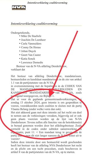 Straf… @de_NVA laat bestuursleden, mandatarissen en kandidaten voor gemeenteraad ‘intentieverklaring’ tekenen om cordon sanitaire tegen @vlbelang te handhaven op straffe van uitsluiting! Men wacht zelfs de verkiezingen niet af… Democratisch? Weg met de kiezer! @kslagmulder
