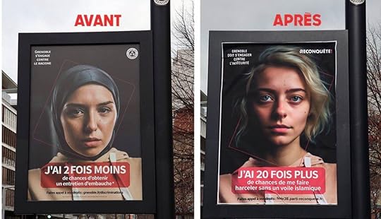 Schitterende affiche! Vrouw met hoofddoek: 2x minder kans op een sollicitatiegesprek… Vrouw zonder hoofddoek: 20x meer kans op intimidatie en aanranding…