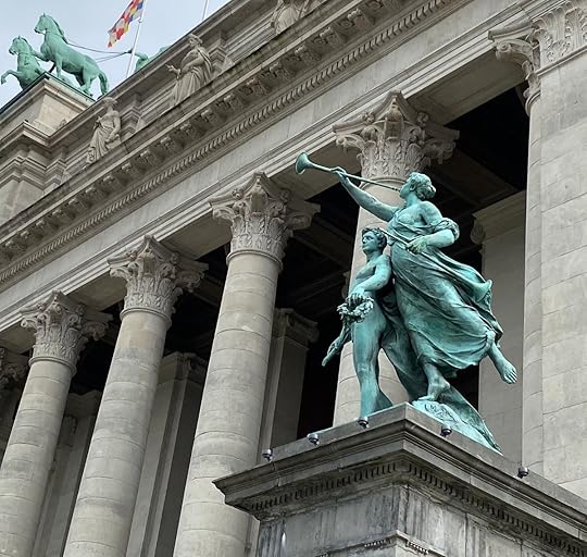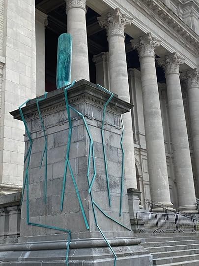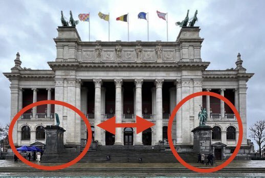 De beeldengroep rechts voor het @KMSKA stond er… Het ding links werd recent ´geplaatst’. Beiden bronzen beelden zijn naar het schijnt ´kunst’ of voor wat het linkse ding betreft vormeloze kitsch. Wie beslist over de plaatsing van zoiets feitelijk? #Antwerpen