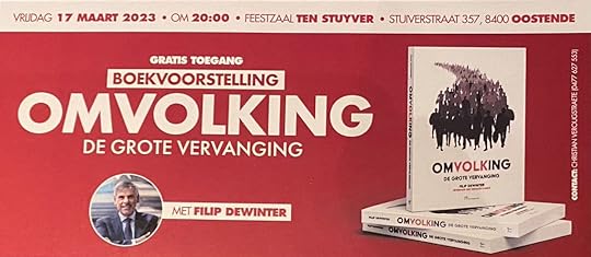 Vanavond boekvoorstelling ‘#Omvolking, de grote vervanging’ in #Oostende Iedereen welkom om 20u in zaal ‘Ten Stuyver’, Stuyverstraat 457 in Oostende… Bestel het boek via filipdewinter.be/omvolking/