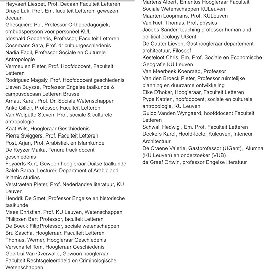Al deze professoren en docenten v/d @KU_Leuven tekenden e/ open brief om mij vanavond nav debat a/ unief #Leuven over #omvolking h/ spreken onmogelijk te maken… H/ vrije debat aan onze universiteiten is morsdood. De #woke dictatuur heerst! https://www.vet