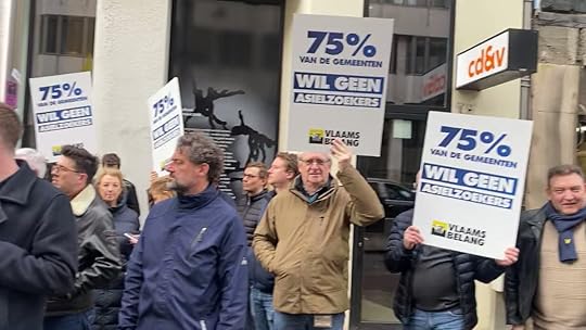 Actie @vlbelang voor hoofdkwartier @cdenv een n #Brussel met de duidelijke boodschap: ‘@CDV vang de asielzoekers zelf op!’