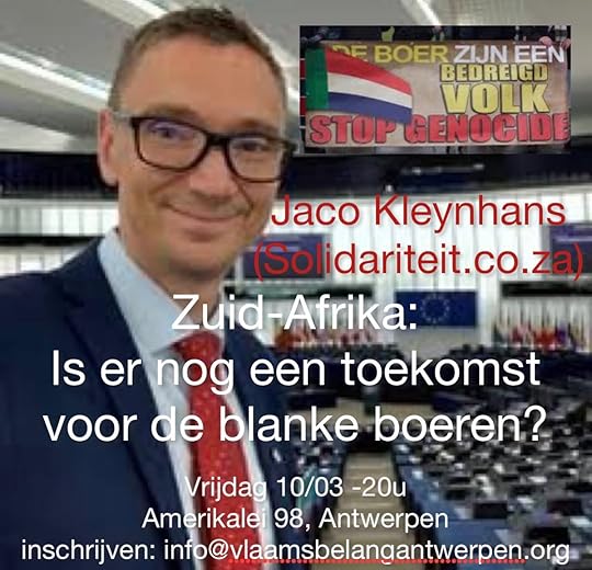 De woordvoerder @JacoKleynhans v/d Zuid-Afrikaanse Boeren-vakbond (die 500.000 leden telt) solidariteit.co.za komt op 10/03 naar #Antwerpen. Hij schets verleden, heden en toekomst v/d blanke Boeren-gemeenschap in #ZuidAfrika. Inschrijven: info@vlaamsbelangantwerpen.org