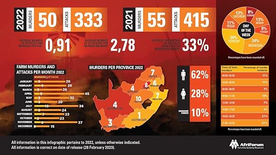 In Zuid-Afrika vonden in 2022 333 aanslagen op blanke boeren plaats. Daarbij vielen 50 slachtoffers. In 2021 415 aanvallen en 55 doden. Slechts 1/3 v/d daders wordt vervolgd. Deze ‘plaasmoorden’ onder h/ motto #killtheboerkillthefarmer zijn e/ extreme vorm v/ anti-blank #racisme