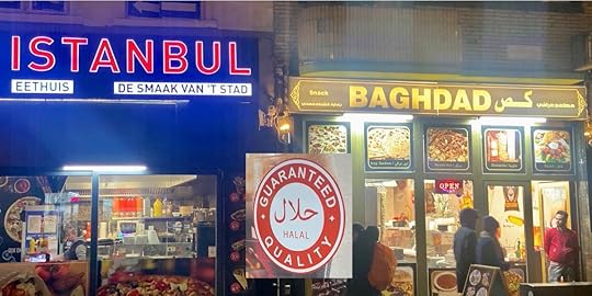 Gezien in de Carnotstraat #Antwerpen: pittatent ‘#Baghdad’ (in het Arabisch) naast eethuis ‘#Istanbul’… Naar eigen zeggen: ‘De smaak van ‘t stad’ maar uiteraard allebei islamcorrect en dus #halal… #AntwerpenVlaamseStad