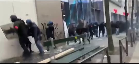 De échte mannen en vrouwen v/h jaar: de #politie die op de barricades v/d multicul-burgeroorlog in onze Europese steden de strijd tegen de vreemdelingen-invasie voert. #Respect #2023 (let op hoe op het einde v/h filmpje zowaar met een hamer naar de politie wordt gegooid…)