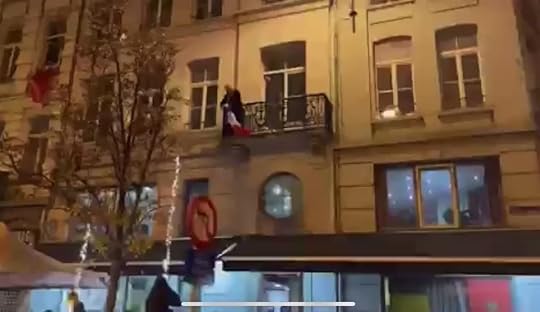 De straatterreur kan beginnen… Een Brusselaar met een Franse vlag aan zijn balkon wordt bekogeld met projectielen en bedreigd en moet in allerijl zijn vlag verwijderen… #Brussel #Qatar2022